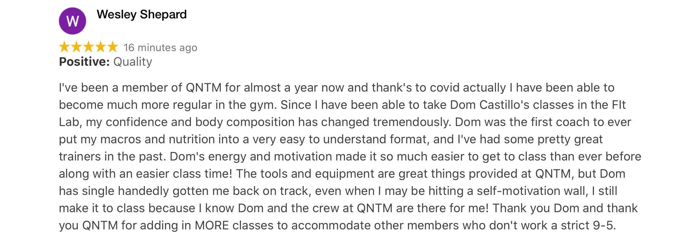 “Over the last twenty years I’ve worked with several fitness coaches. I found Dom to be the most thorough, knowledgeable, and committed to designing a program tailored specifically to my unique personality and fitness goals.”— Vic, 42, Nashville